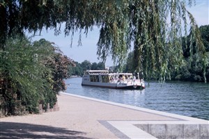 Tranquillement le bateau remonte la rivière... en passant l'écluse Saint Maurice, lieu d'enfance de Delacroix, l'île du Moulin Brûlé, l'île aux Corbeaux. Laissant l'île Fanac, vous entrerez "au pays des guinguettes" : Gégène, le p'tit Robinson, l'ancien bal Convert et le Verger à Nogent. Après avoir longé les îles des Loups et d'Amour, le bateau fait demi tour à Bry-sur-Marne et accoste pour le déjeuner à Joinville le pont : à votre gré, pique-nique ou déjeuner à la Guinguette.