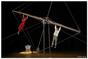 Les deux acrobates du Cirque Hirsute vous invitent à une parade amoureuse drôle et touchante, à 7 mètres de hauteur.