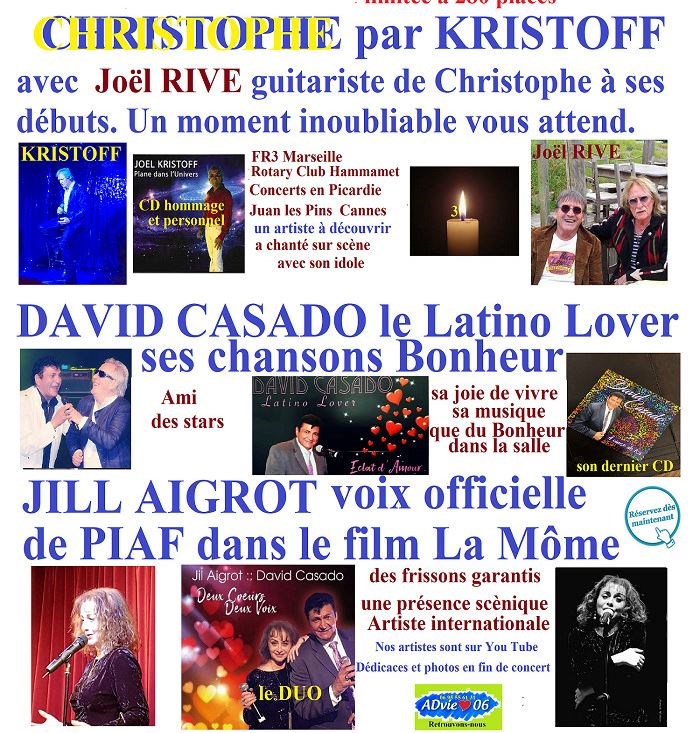 Hommage à Christophe avec Joël Rive, son guitariste, Jil Aigrot, chanteuse internationale et David Casado, Latino Lover