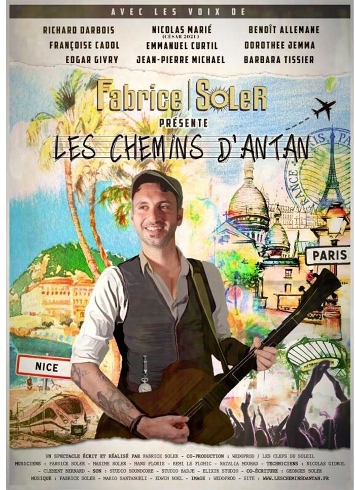 je conseille vraiment d'aller voir la comédie musicale " les chemins d'antan ". Une création très originale de Fabrice Soler qui, avec son groupe nous fait vivre à travers la visite de Montmartre et de Paris une très belle histoire ! on prend beaucoup plaisir à voir ces acteurs et ces musiciens nous apportee ce grand moment de fraîcheur et de bonheur pour un spectacle, vraiment excellent de joie et de bonne humeur ! Bravo et merci !