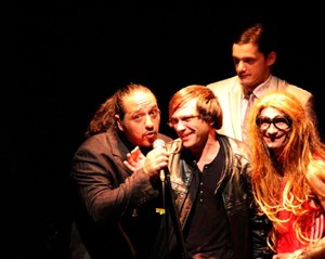 Il y a le petit chef mégalo et autoritaire, l'ingérable prêt-à-tout en perruque blonde, le géant maladroit et long à la détente, et le vrai musicien, qui tente vainement de cadrer ses trois acolytes fous furieux.