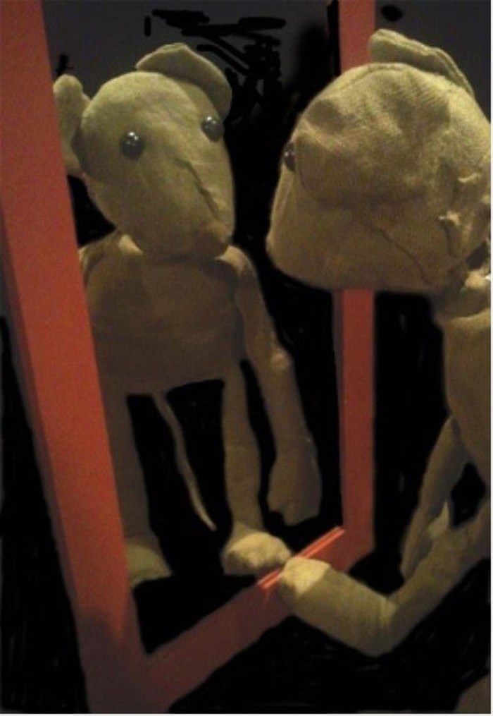 Mais ! Tu bouges quand je bouge, tu ris quand je ris et quand je te touche avec mon doigt tu mets le tien sur le bout du mien ! Et si tu étais moi ?"