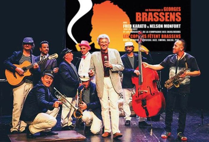 "Les copains d'abord" version salsa, "Le Gorille" en merengue ! Sous la houlette de Nelson Monfort, fin connaisseur de l'histoire du poète sétois, le saxophoniste Fred Karato et la troupe des Enjoliveurs (musiciens, chanteurs et danseurs) rendent un hommage vibrant à l'amoureux de jazz qu'était Brassens dans ce spectacle qui fait salle comble depuis sa création.