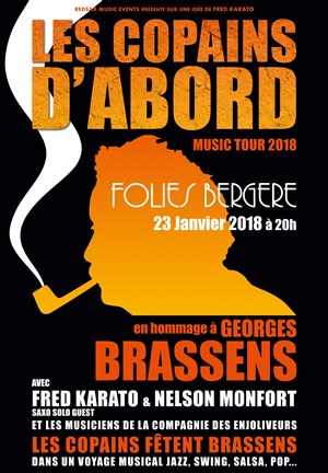 Nelson Monfort en Maître de Cérémonie sera le fil conducteur de la soirée et vous racontera Brassens à travers des anecdotes et des vidéos inédites du grand Georges. Ce spectacle musical met a l'honneur Brassens le musicien, le grand mélodiste et l'amoureux de Jazz, qui était sa musique préférée. Il avait enregistré un album intitulé "Les Géants du Jazz" en 1969 avec de grands musiciens Américains et Francais. Venez découvrir "Les Copains d'Abord" version Salsa , "Le Gorille" en Merengué ou encore "La Jolie Fleur" version Jazz... Et beaucoup d'autres surprises. Un spectacle hommage joyeux et émouvant, en toute simplicité...