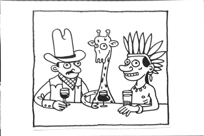 Aujourd'hui, nous allons jouer de nouveau cette farce. Et les acteurs seront cowboys et indiens. Et chaque clan aura son quotidien, ses propres histoires d'amour, de fraternité, de famille, ses propres angoisses. Et ils se baladeront près d'une rivière et referont le monde à leur image. Comme des enfants. Non, comme des adultes, avec une conscience historique, politique voire artistique..." Raouf Raïs.
