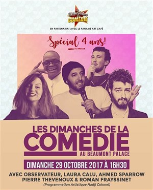 L’événement Les Dimanches de la Comédie - Les 4 ans de type Plateau d'humoristes, organisé ici : Beaumont Palace -