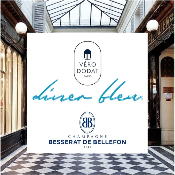 Le menu du Dîner Bleu au Véro Dodat avec la maison Besserat de Bellefon :