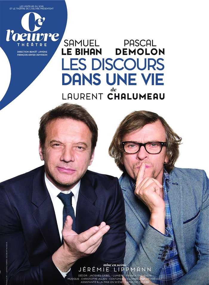 Le texte de Laurent Chalumeau, comme son nom l'indique, offre aux deux comédiens une série de discours (mariage, boulot, enterrements...) qui compose le portait des deux vies parallèles, d'une amitié profonde. Pascal Demolon, décidément toujours impeccable, est certainement mieux servi par l'auteur dans son rôle de prof de français à l'humour très cynique. Au final, un beau moment de théâtre où les quelques faiblesses du texte sont couverts par la belle énergie des deux comédiens.