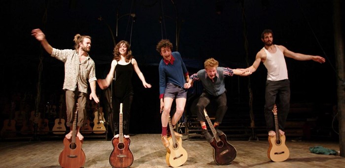 Les musiques sont leurs respirations. Du violon à la contrebasse en passant par les guitares, autant de variations sur cordes, sur corps, pour des mouvements acrobatiques et des cascades périlleuses.