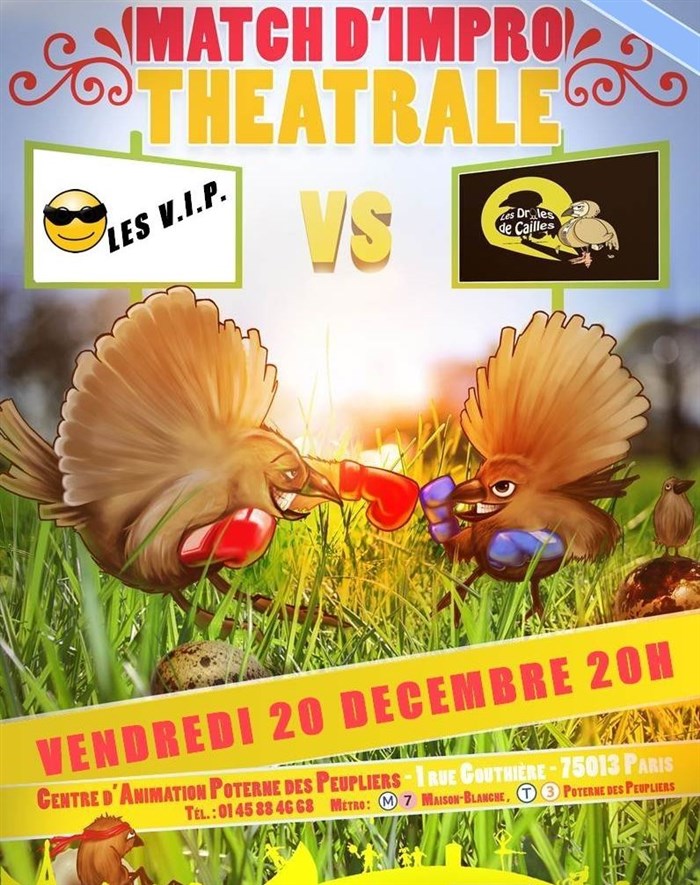 L’événement Les Drôles de cailles vs Les V.I.P. de type Improvisation, organisé ici :