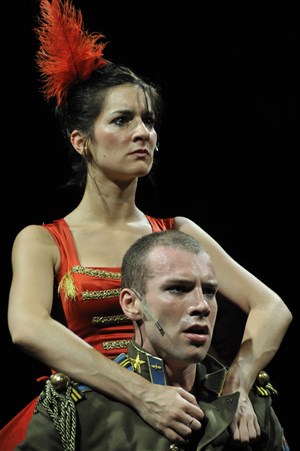 Une fantaisie étonnante, où tragédie,comédie, chant et danse se mêlent. [...] un peu rock, avec des textes déjantés et une mise en scène à la lisière du cirque forain.