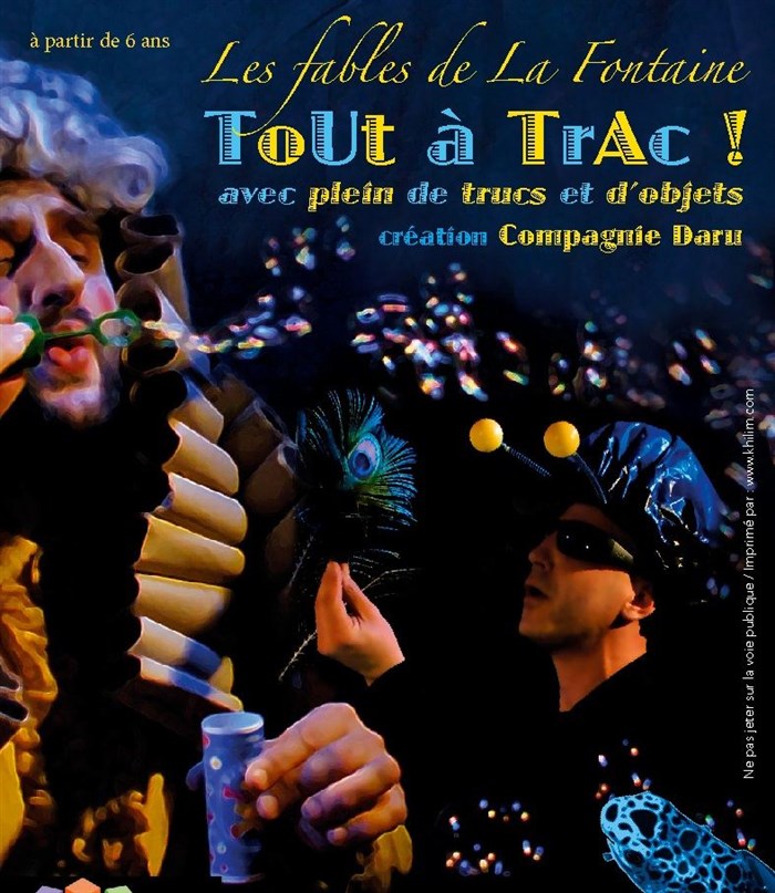 Deux acteurs-marionnettistes, jouent les fables les plus connues de La Fontaine avec des objets quotidiens marionnettisés et un vrai sens du burlesque