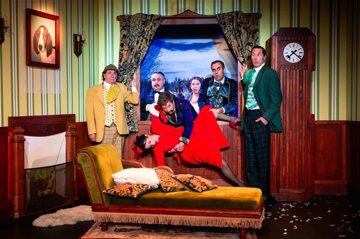 Imaginez 7 amateurs de romans noirs anglais qui décident de créer un spectacle alors qu'ils ne sont jamais montés sur scène ! Ils ont choisi une pièce inédite, un véritable chef-d'oeuvre écrit par Conan Doyle lui-même (enfin, c'est ce qu'ils prétendent !)... L'action se situe fin XIXème, dans un superbe manoir, en plein coeur de l'Angleterre, lors d'une soirée de fiançailles. Les festivités vont enfin commencer quand un meurtre est commis. Chacun des invités présents dans le château devient alors... un dangereux suspect.