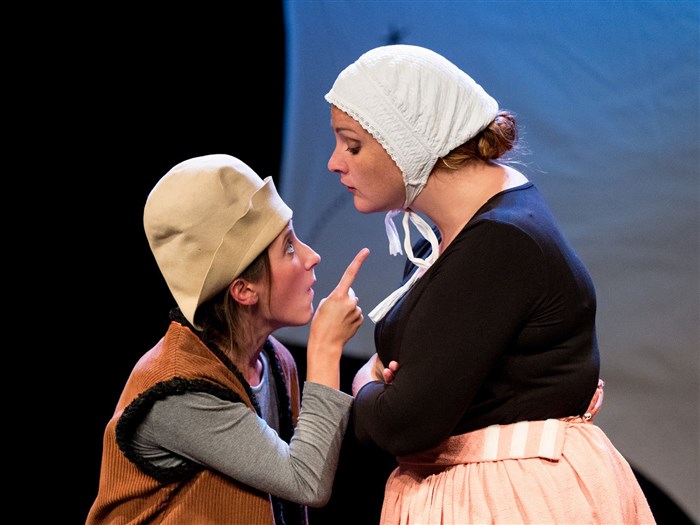 C'est peut-être parce qu'elles prenaient une grande place dans sa vie que Molière fait la part belle aux femmes dans ses pièces de théâtre. Grâce à une scénographie soignée, nos deux comédiennes nous font voyager dans l'oeuvre de Molière, endossant à tour de rôle les costumes des personnages féminins très marqués du grand dramaturge.