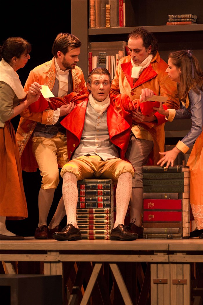 Et trouvent en Monsieur Trissotin un messie pour la Science, dont elles commentent avec passion la moindre ineptie. Seule la cadette Henriette aspire à l'amour sincère plutôt qu'à l'amour de l'étude, ce que sa mère Philaminte entend autrement...