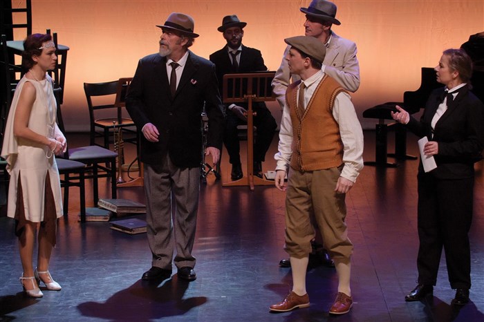 Ambiance et costumes 1920 avec des instruments et une musique jazz en arrière fond. Armande est une talentueuse pianiste, Belise est toute jeunette mais tout aussi timbrée. Tous les comédiens sont magiques de grâce et de légèreté. Trissotin roule les mécaniques de façon irrésistible (mais se prend un coup de genou dans les roubignolles par l'énergique et délicieuse Henriette), Clitandre est en casquette, Chrysale est toujours adorable et attachant face à la mégère redoutable Philaminte. Tous sont à citer ! Moment de pur bonheur
