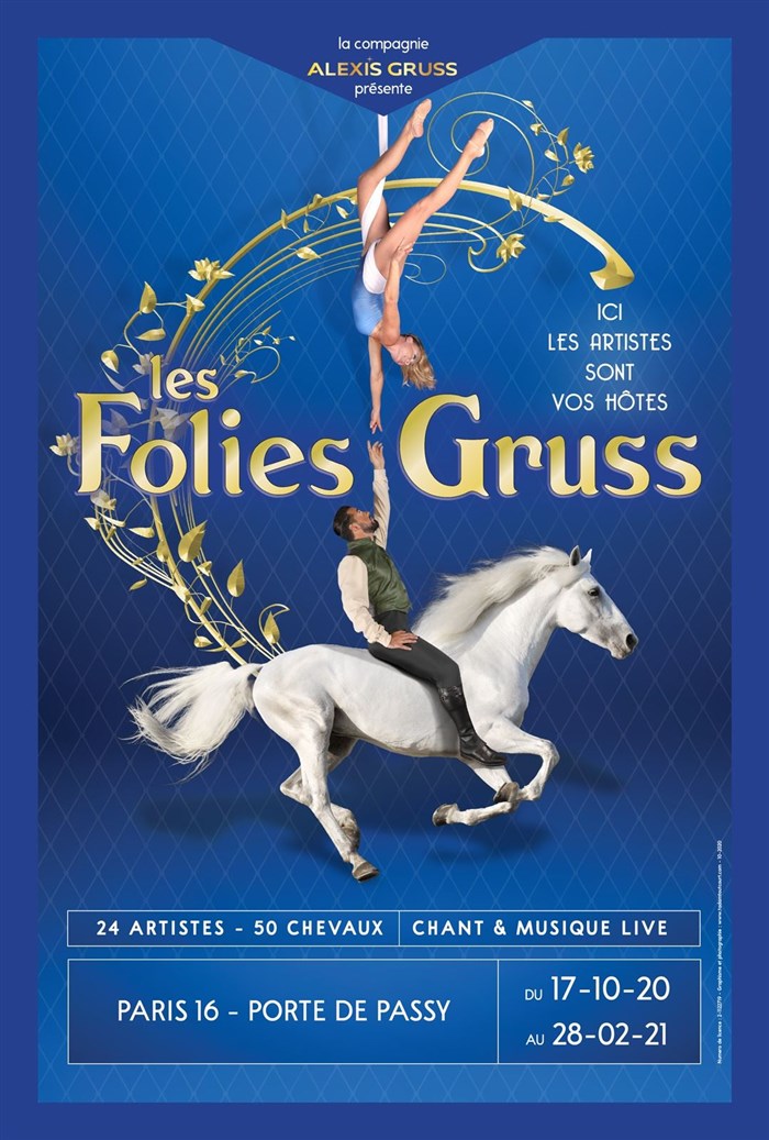 Ainsi, Les Folies Gruss devient le lieu de tous les plaisirs, où le spectateur peut faire le plein des sens, avant, pendant et après le spectacle. Nouvelle scénographie, nouvelle équipe créative, nouvelles envies, nouvelles complicités. Un repas gourmand au milieu d'acrobates, de chevaux et de surprises artistiques, un verre, une danse, puis un échange avec un artiste, dans une atmosphère festive et conviviale, c'est ça les Folies Gruss !