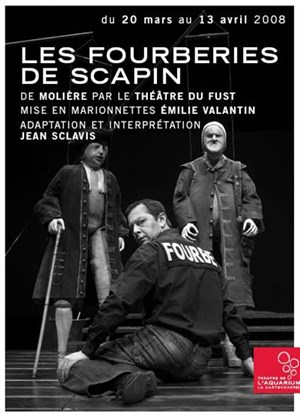 Sur scène, le comédien Jean Sclavis rivalise d'équilibre et d'ingéniosité pour donner corps à huit pantins d'environ 1,30m. Une véritable performance d'acteur, et un comble pour Scapin le farceur, à son tour manipulé ... par des ficelles !