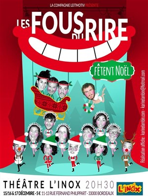 A l'occasion de l'anniversaire de leur 4 ans d'existence, les "Fous (du) Rire" de la Compagnie Leitmotiv, ont décidé de vous donner rendez vous au Théâtre l'Inox pour 3 jours de rires, 3 jours de fou rire, autour du Thème de Noel et des fêtes de fin d'année. Alors n'hésitez pas, faites la fête avec nous... avant les fêtes !