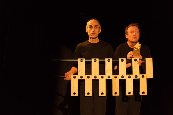 Au beau milieu d'une construction en perpétuel mouvement, dans un univers sonore à l'architecture surprenante, ils se jouent des murs, dansent avec les mots, faisant sonner briques, ardoises et tuyaux.