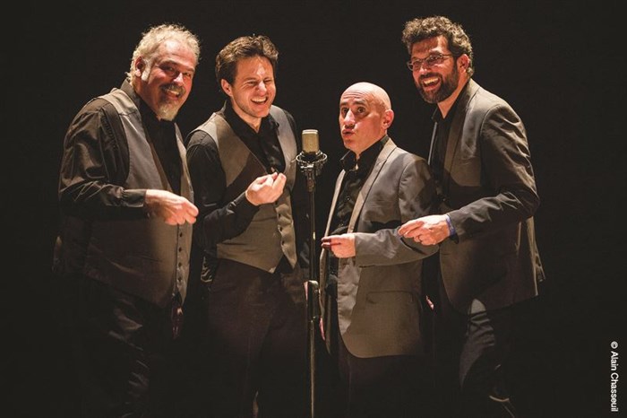 Un spectacle dynamique, une heure de chansons et de rires. Nos quatre joyeux lurons entrainent les spectateurs dans une belle complicité. A voir, à écouter, à rire ! sans modération !