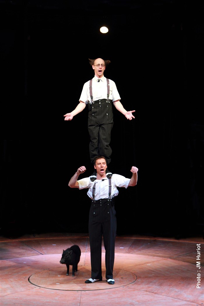 Non contents d'injecter des prouesses acrobatiques aux moments les plus inattendus, Bénito et Giovanni vont vous initier à un numéro de bonneteau géant à dérider les éléphants, vous faire découvrir leurs voix de ténor (mais où est la diva ?), vous présenter leur invité surprise car point d'éléphant pour le numéro de dressage mais une tirelire vivante !