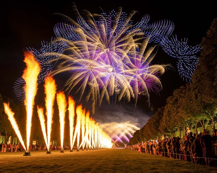Vous irez à la rencontre d'artistes de feu et tomberez en admiration devant les flammes monumentales qui parsèment la Grande Perspective du Jardin royal.