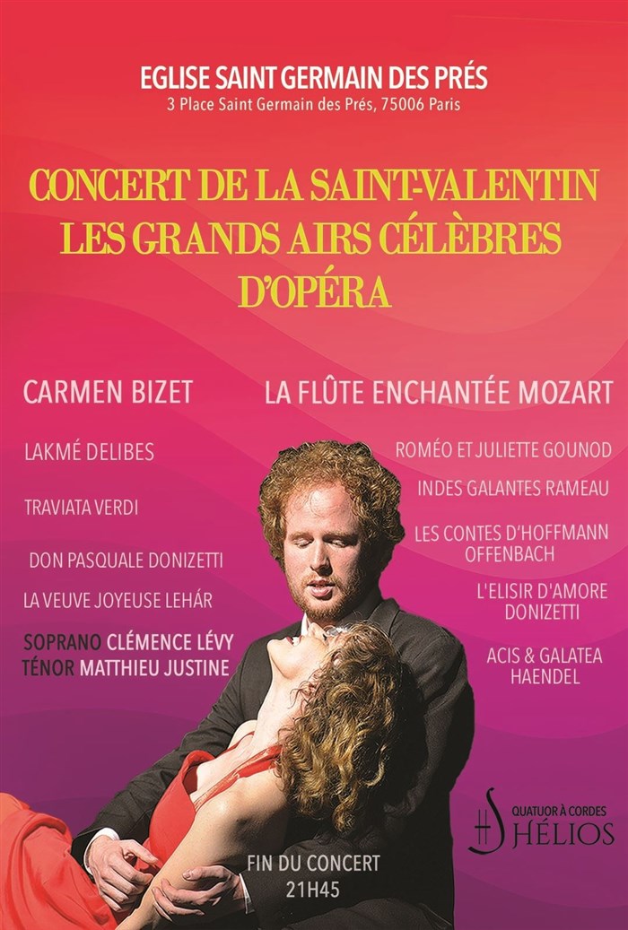 Concert de la Saint-Valentin Les Grands Airs Célèbres d'Opéra pour Soprano et Ténor Clémence Lévy & Matthieu Justine Quatuor à cordes Hélios