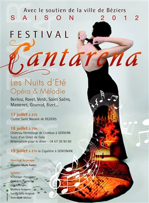 Fidèles à la volonté de servir la beauté par l'expression vocale et notamment lyrique, Festival Cantarena vous propose pour la saison 2012 une série de concert de grande tenue avec le chef d'orchestre Maestro Marc Foster qui accompagnera les solistes pour revisiter les grands classiques du répertoire international de l'opéra et de la mélodie Française.