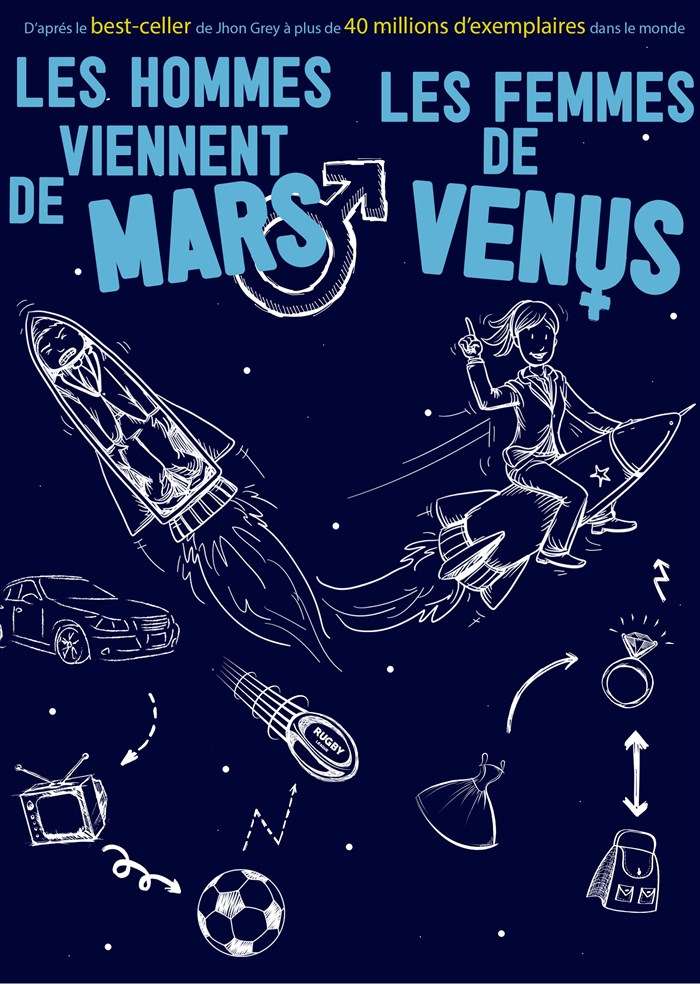 Avec 2 millions de spectateurs, ce spectacle inspiré du Best-seller de John Gray est devenu une véritable référence ! À l'heure où les rapports hommes-femmes sont questionnés, décortiqués, voire malmenés, ce spectacle prouve que l'égalité est bien en marche, que le couple est loin d'être un schéma ringard, et qu'au-delà des orientations sexuelles de chacun, tout le monde court après la même chose : l'amour !