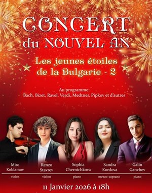 Elles brillent déjà sur les scènes d'Europe et annoncent l'avenir de la musique classique : Sandra Kordova (mezzo-soprano), Renzo Stavrev (violon), Sophia Chernichkova (piano), Miro Koldamov (violon) et Galin Ganchev (piano) vous invitent à un voyage musical éblouissant.