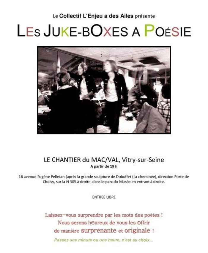 L’événement Les Juke-Boxes à Poésie de type Lecture / Poésie / Contes, organisé ici :