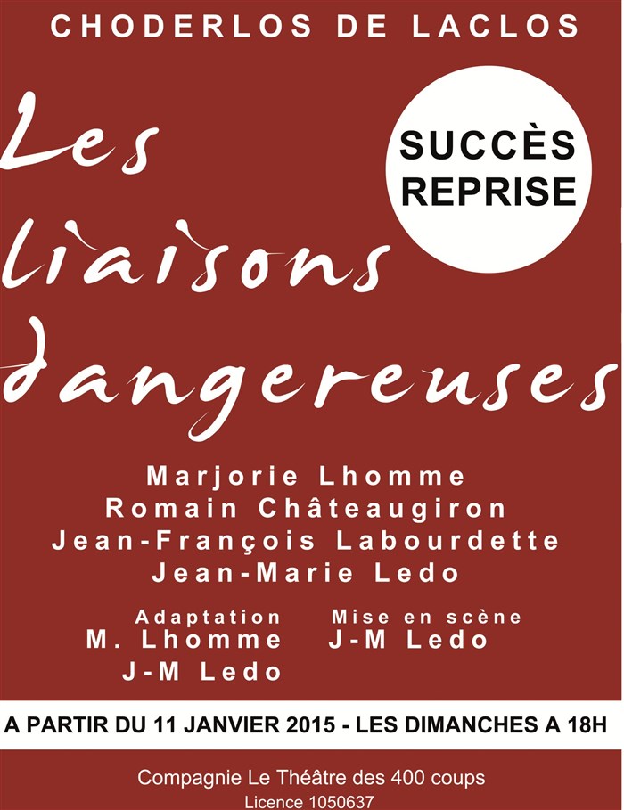 Au programme de 1ere cette année, ce livre à lire de La clos à vrai dire un peu rébarbatif quand on a 16 ans. Mais comment allait on mettre en scène ce livre? royalement, ingénieusement, formidablement.Mon fils enchanté par cette troupe et sa très bonne mise en scène fait passer le mot: cette troupe , elle est géniale! mais que çà vous empêche pas de lire le livre bien au contraire! courez au spectacle, du bon théâtre, merci
