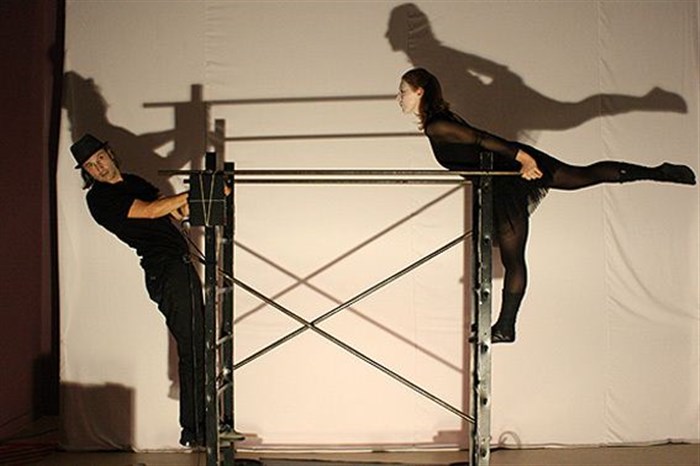 Une ballade en puissance de deux artistes qui ne font qu'un, entre jeux d'ombres et d'éclairages, mime, sons et musique.