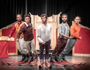 - Dans un univers burlesque et poétique, mélangez à l'aide de skis, du rire et cinq acrobates.