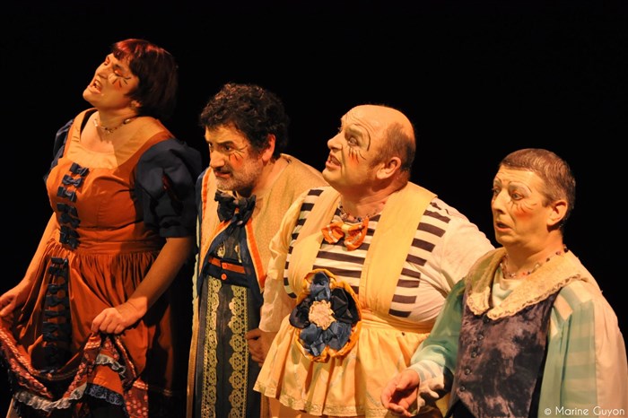 On rit du corps enfantin maltraité, des douleurs de l'enfance et du massacre des animaux. On en rit à travers neuf chansons–songs et les corps déchaînés de quatre comédiens poupées, très loin de leur "âge d'or".