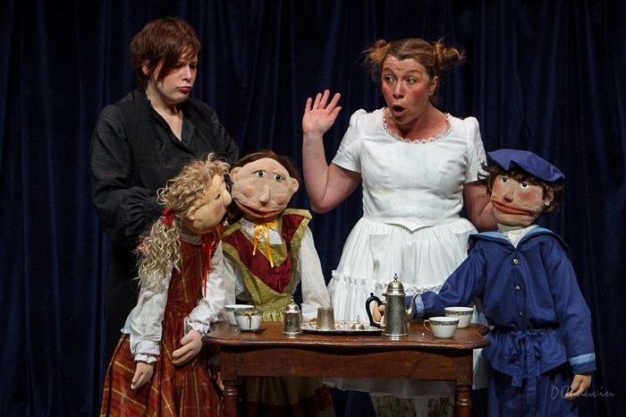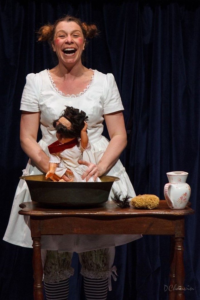 Sophie transporte les enfants dans ses aventures mouvementées, accompagnées de marionnettes et de chansons dans la tradition foraine du théâtre de tréteaux.