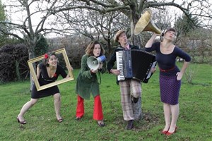 Deux danseuses, un accordéoniste et une écrivaine vous prennent la main pour suivre une histoire de chaussures, de pompes, de galoches. Et, la danse soulève, étonne au rythme de l'accordéon.