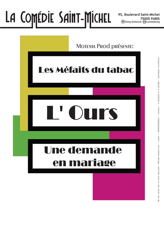 L’événement Les Méfaits du tabac + L'Ours + Une demande en mariage de type Théâtre classique, organisé ici :