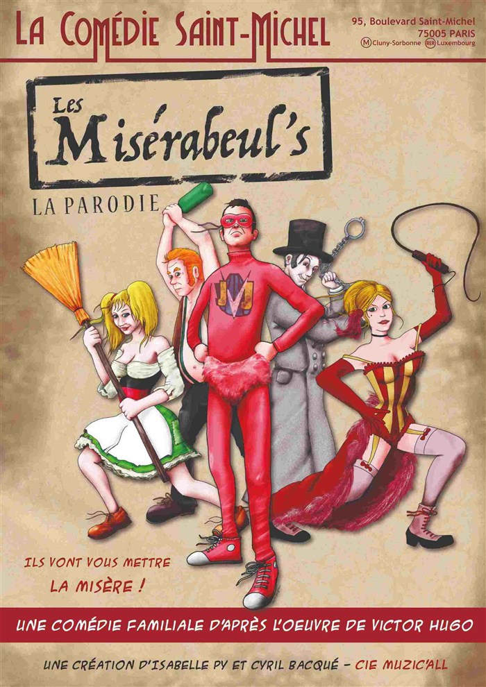 Une comédie truffée de clins d'oeil et d'anachronismes qui font le pont entre la version du 19ème siècle et le modernisme de notre époque (speed dating, super héros, Battle de chant, high tech, etc). Les 5 comédiens croquent une galerie de personnages (Valjean, Cosette, Fantine, Javert, Marius, Thenardier, Eponine...) plus frappadingues les uns que les autres !