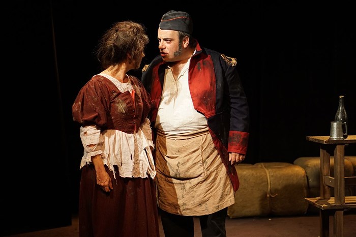 " Adapter " Les Misérables ", quelle belle gageure pour un metteur en scène ! Comment réussir à donner vie à 1 800 pages, en 1h30 ? Comment représenter à leur juste valeur les scènes des barricades, de l'auberge, de l'usine, le tout en respectant le génie hugolien ? Grâce à la faculté de travestissement des huit artistes de la distribution, la totalité des personnages clés est incarnée sur scène et avec eux le microcosme de leur société. Au centre de cette tourmente, l'amour de Cosette et de Marius reste inébranlable. Les spectateurs assistent à cette fresque titanesque et suivent Jean Valjean à la fois emblème universel de l'Homme en quête de rédemption et figure intime d'un père face à sa fille. "