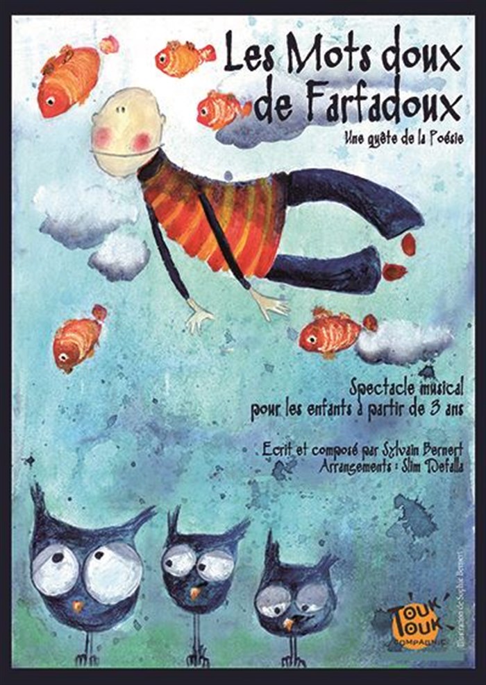 J'ai vu ce spectacle avec ma fille de 2 ans 1/2 qui a beaucoup apprécié. La musique et les compositions originales sont très belles et le décor magique, nous embarquons avec plaisir sur le bateau de Farfadoux... à la recherche des mots doux.... Un voyage initiatique et poétique hors du temps et du monde, qui nous enchante tout à fait. A noter cependant, un léger manque d'énergie de la part des comédiens à certains moments, et d'une manière générale un léger manque de rythme au spectacle... Peut être 5/7 min de trop... à resserrer donc. Bonne continuation à l'équipe.