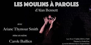 Drôles, touchantes, douces amères et terribles à la fois... vous les découvrez dans 3 magnifiques monologues issus du Moulin à Paroles/Talking Heads d'Alan Bennet, "Un lit parmi les lentilles, Une femme de lettres et La chance de sa vie " tirés de Moulins à Paroles.