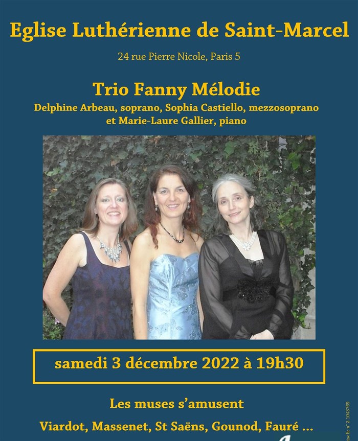 Un nouveau programme du trio Fanny Mélodie, tout en pétillance. Solos et duos de Viardot, Fauré, Saint Saens, Bernstein, Weill, Kosma...