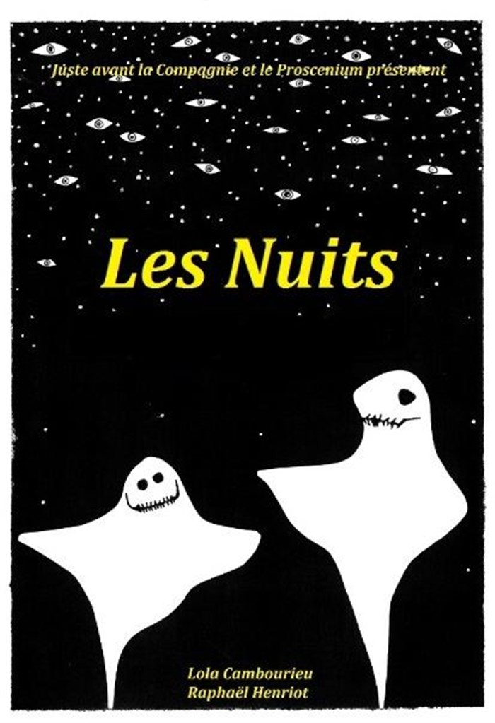 Les Nuits sont avant tout la déclaration d'amour de deux comédiens au théâtre, à ses plus grands auteurs, à ses figures les plus mythiques. Notre approche, qui se veut obsessionnelle et ludique, tente de répondre à deux grandes questions inhérentes au théâtre : celle de la représentation, et celle de l'incarnation, auxquelles nous renvoyons, comme négatif, deux idées, la malédiction et la damnation.