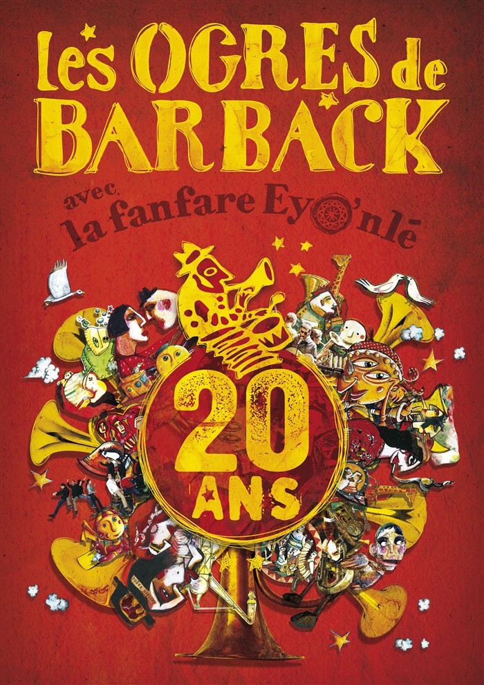 20 ans à développer incessamment de nouveaux et atypiques projets, dont la rencontre semble être le maître-mot. Il était, dès lors, naturel de ne pas partir seuls célébrer cette double décennie. Les huit musiciens béninois [cinq cuivres, trois percussionnistes] de la Fanfare Eyo'nlé, qui viendront partager cette aventure avec la fratrie, permettront d'enrichir encore la palette déjà large de l'instrumentation de titres des Ogres, et de lui insuffler une énergie différente, celle d'un autre continent.