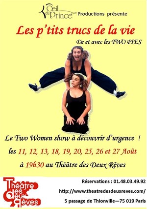 Bravo les two pies pour votre prestation. J'ai adoré votre spectacle qui met en scène des situations de la vie quotidienne face auxquelles on ne peut que rire. Très belle interprétation. Spectacle très dynamique. Merci pour ce très bon moment passé en votre compagnie. Au plaisir de venir vous revoir.