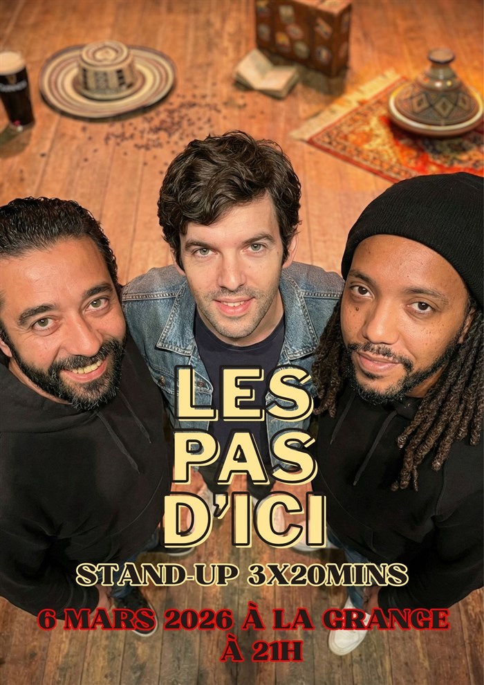 Découvre Les Pas d'Ici : Hamza, Santiago, Donal, qui fait partie de notre sélection d’événements de type Duo ou trio d’humoristes et qui se tient ici : La Grange -