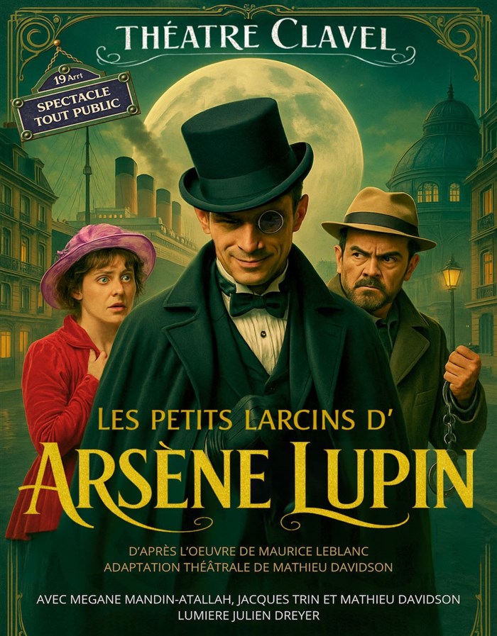 Découvre Les petits larcins d'Arsène Lupin, qui fait partie de notre sélection d’événements de type Policier et qui se tient ici : Théâtre Clavel -