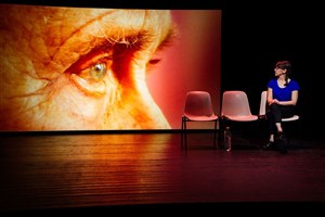 L'actrice dit les paroles de la gériatre, en dialogue constant avec un film documentaire sur ces " vieux ". Elle brise des tabous : le vieillissement dans un monde qui prône les valeurs de la jeunesse, la dépendance, la mise en institution, notre rapport à la mort.